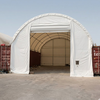 Curved structural tent systems engineered for enhanced wind resistance and architectural appeal. Suitable for specialized industrial applications.