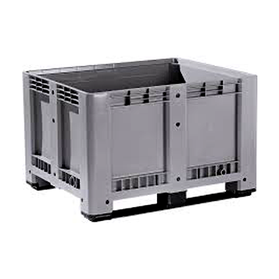 Heavy-duty bulk containers for stacked or palletized storage. Enhances material handling efficiency and space utilization.
