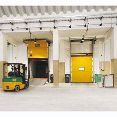 Sectional Overhead Doors open vertically and rest under the ceiling, maximizing space efficiency. Used in warehouses, factories, and logistics centers. The key benefit is excellent insulation with smooth, space-efficient operation.