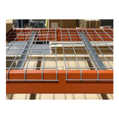 Steel mesh panels installed on racking beams for enhanced load support and fire safety compliance.